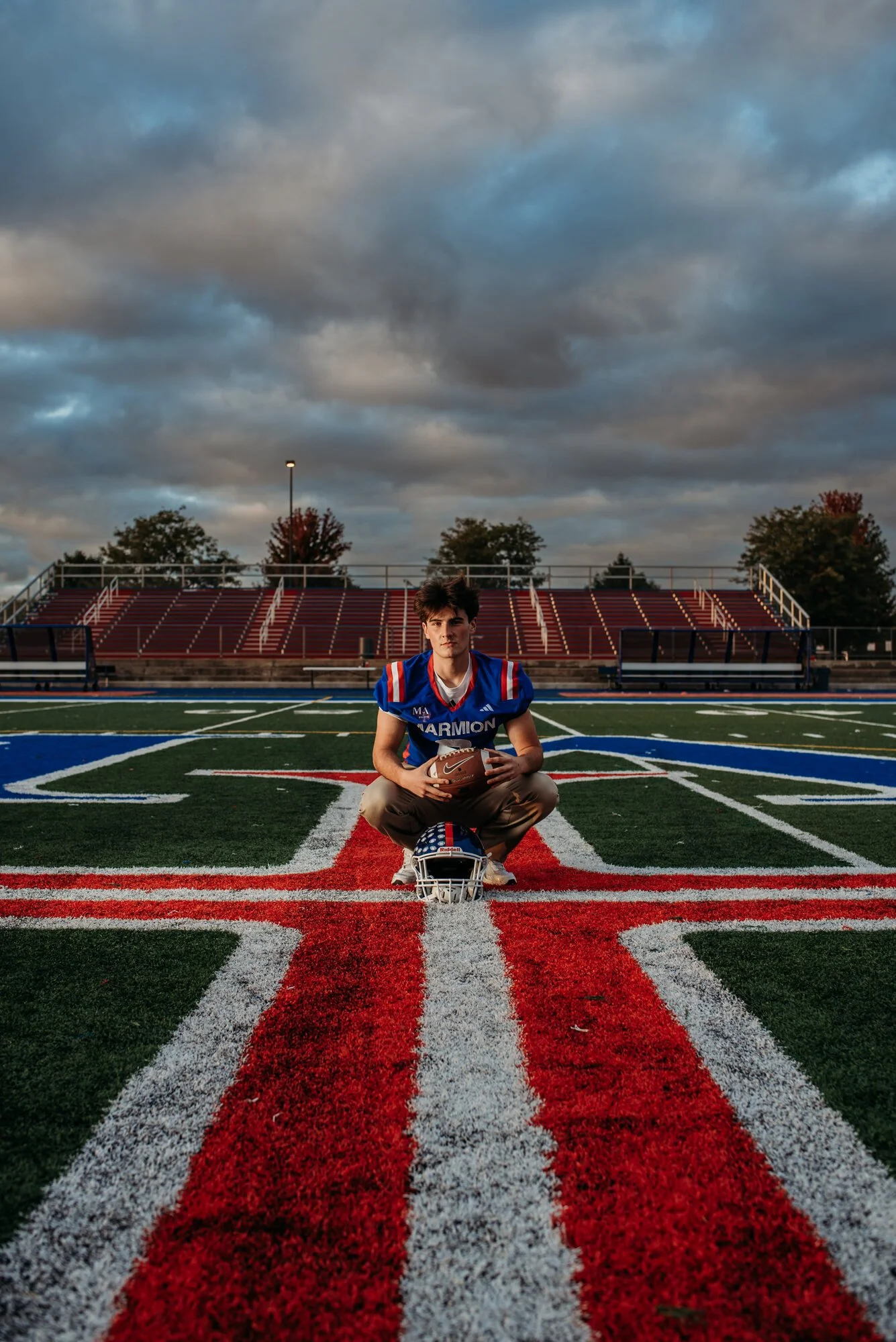 Our Senior + Sports Session is the ultimate experience for seniors in the Western Suburbs of Chicago who want it all. This session combines dynamic, magazine-style sports portraits with classic senior photos—all in one seamless, fun, high-energy day. We’ll capture your athlete’s strength, personality, and passion on the field, then switch gears for polished senior portraits that highlight their style and individuality.